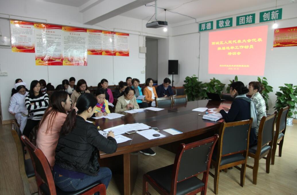 【本网讯】10月31日下午,附属医院党支部在行政楼301会议室召开雨城区第十六届人大代表换届选举工作动员会,会议由党支部书记祝继英主持,副书记宋健、支部委员、党小组组长和分工会小组组长共计22人参加。