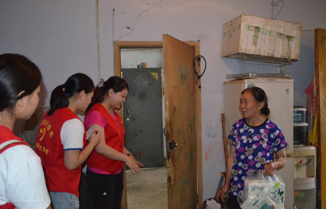 到达社区后,志愿者立即行动起来布置现场,挂横幅、搬板凳桌子、准备服务工具等,大家干得热火朝天。活动还未正式开始,就有不少居民前来等候。活动中,志愿者们为社区居民测量血压血糖,耐心地检查和解答居民的健康问题,向他们发放夏季防暑药品。同时,联合社区志愿者,师生志愿者走访了社区内几位老人的家,根据他们的居住环境情况,讲解有针对性的保健知识,提出急需解决的问题和建议,并为他们送去夏季防暑药品和一些生活必需品。