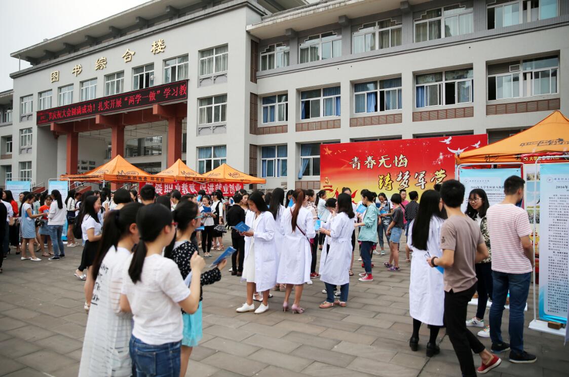 【本网讯】作为学院职业教育活动月活动之一,5月10日下午,由学院招就处与保卫处联合举办、创新创业俱乐部承办的就业创业、征兵入伍政策宣传活动在学院青年路校区图书综合楼前广场进行。市人社局就业促进科李科长、刘老师,雨城区武装部征集科向老师受邀来院,与学院保卫处副处长徐维、招生就业处副处长吴洁等老师为同学们做现场政策咨询。
