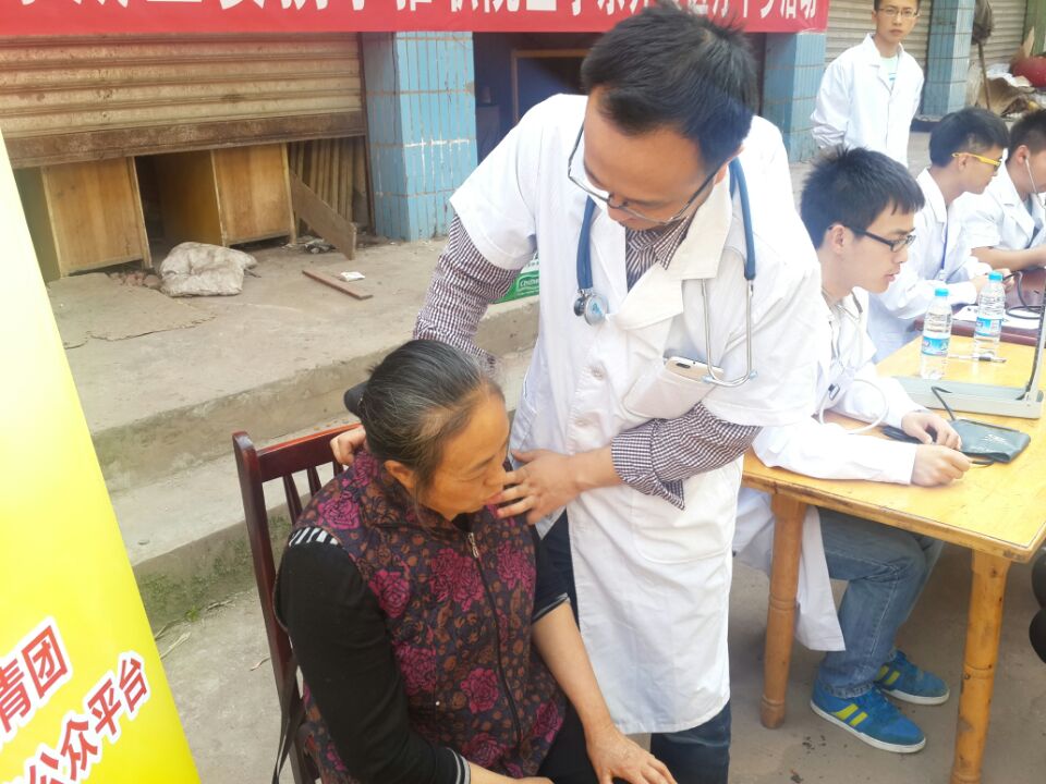 【本网讯】5月14号上午,共青团雨城区委携手我院医学系在雨城区望鱼乡开展中医义诊活动,医学系副主任庞嘉言和15名医学系学生志愿者参与其中。