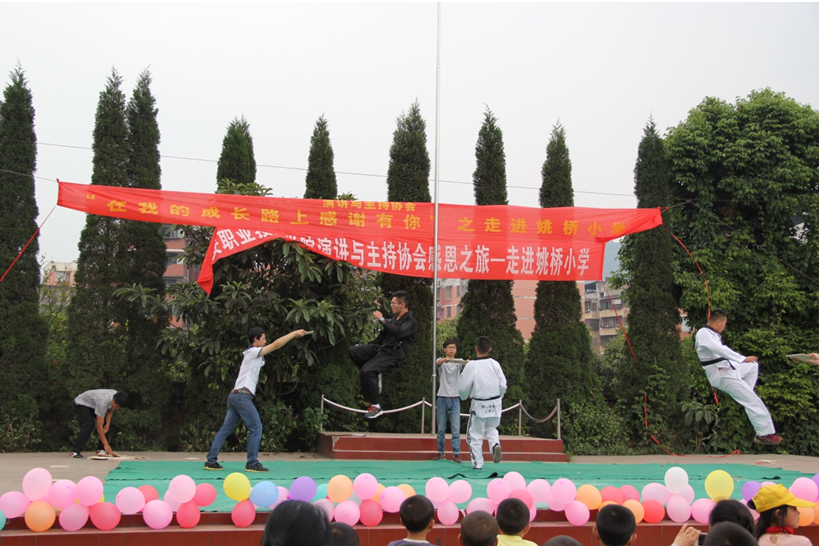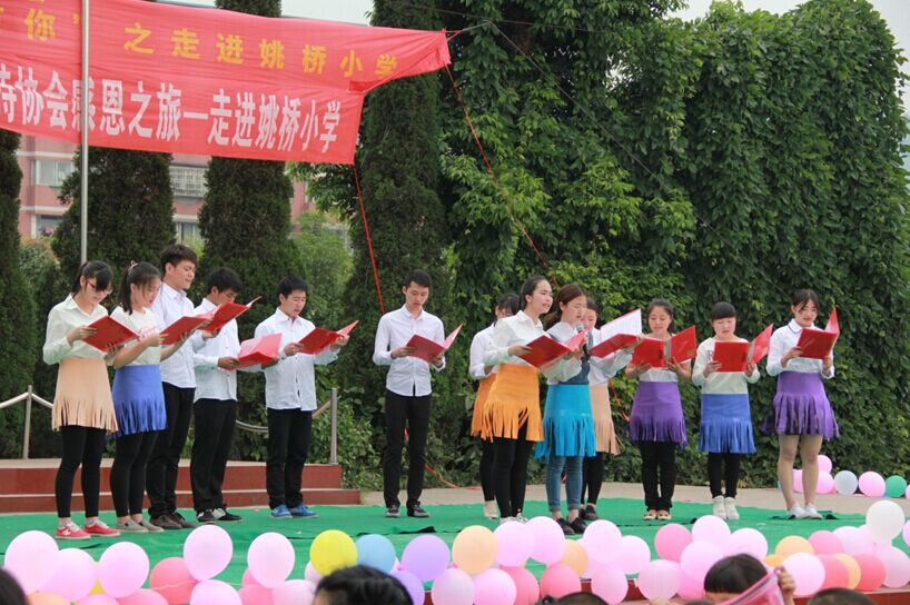 【本网讯】5月5日,姚桥小学里欢声笑语不断,由我院演讲与主持协会举办的“在我的成长路上,感谢有你”义演活动在这里热闹举行。