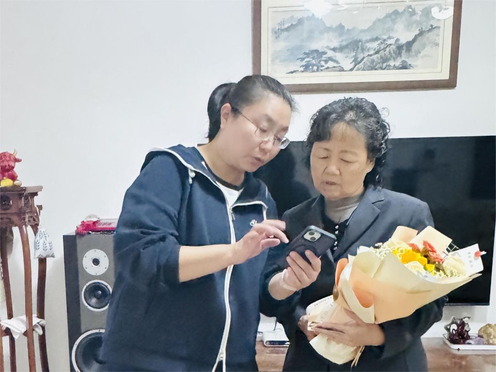 在此次活动中,共慰问14位退休教师,其中特别探访了胡迪美、张建萍、辛莉三位退休教师,与他们促膝交谈、细听家常,关切询问她的身体状况和近期生活情况,同时介绍了学校的发展近况,聆听了他们对学院未来的期许与建议,并祝愿她身体健康、身心舒畅、晚年幸福。