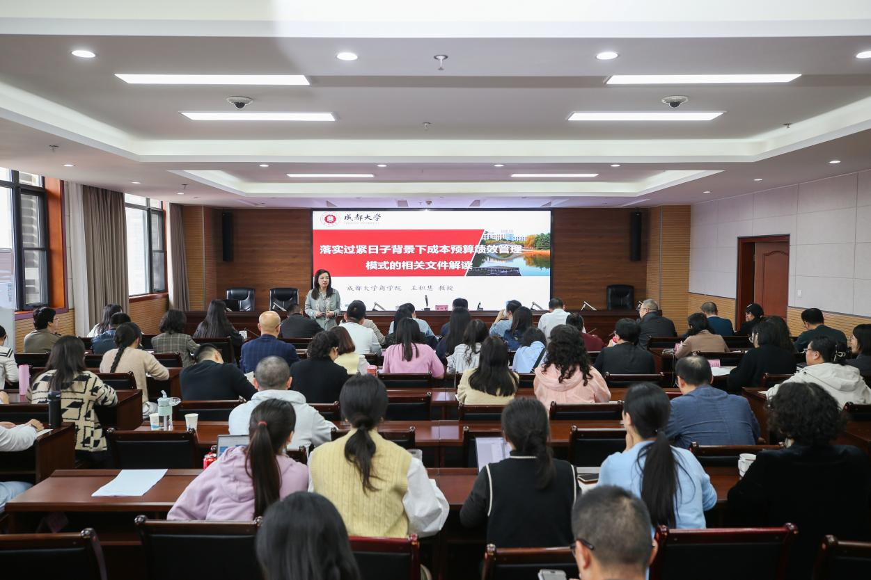 为深入贯彻党的教育方针,全面提升学校预算编制质量,强化绩效管理效能,确保资金使用合规合法,10月15日下午,学校组织召开高校财务预算与绩效评估专题培训会。学校党委常委、副校长樊先茂主持会议,成都大学商学院高级会计师王积慧教授受邀出席讲学,各二级单位、市级技能大师工作室、科研创新团队、立项科研等项目负责人及相关工作人员参会。