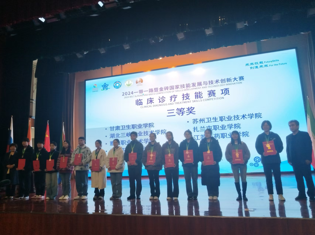 11月14日至17日,“2024一带一路暨金砖国家技能发展与技术创新大赛临床诊疗技能赛项”在山东菏泽医学高等专科学校顺利举行。 来自全国45所高职高专院校的代表队同台竞技,竞争激烈。鸭脖临床医学院靳太生、张彤两位学生荣获团体三等奖。