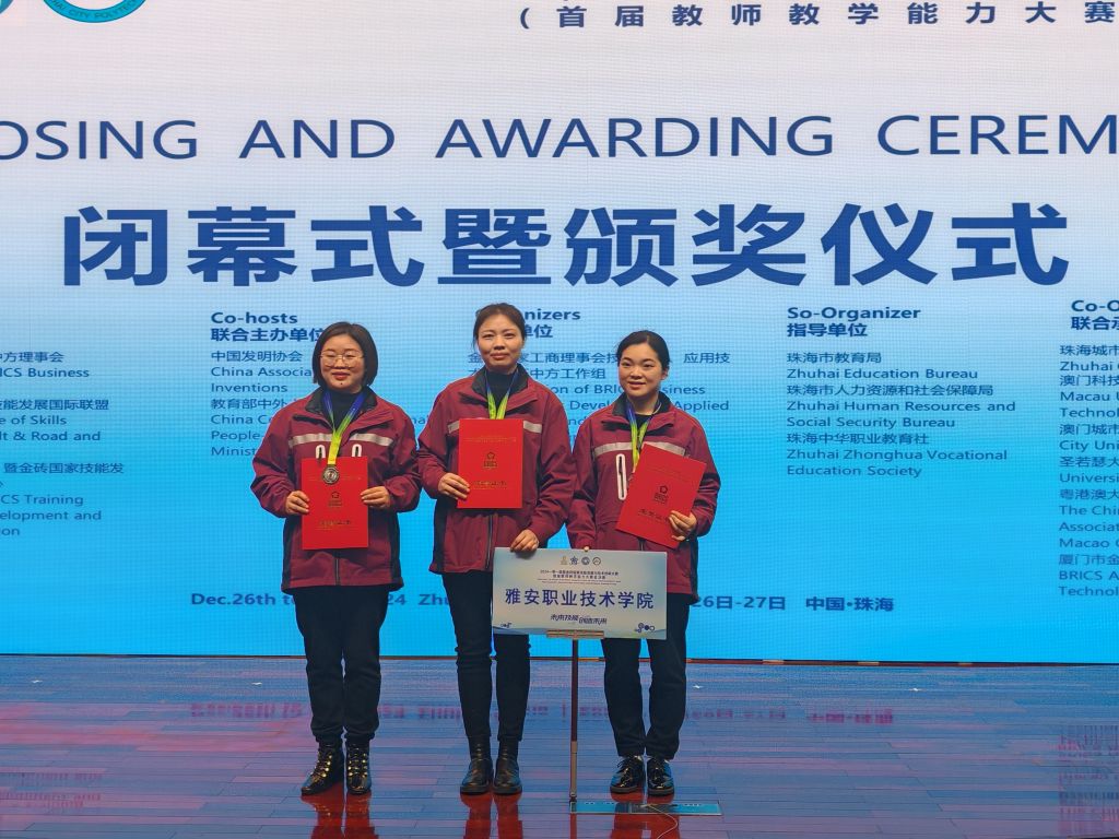 12月26日至27日,由广东珠海城市职业技术学院、澳门科技大学、澳门城市大学、圣若瑟大学、粤港澳大湾区中华职业教育社共同承办“2024一带一路暨金砖国家技能发展与技术创新(首届教师教学能力大赛)总决赛”,在广东珠海城市职业技术学院顺利举行。本届比赛共全国25个省、自治区、直辖市近300支队伍参加,最终39所高职院校60支队伍进入总决赛,角逐金银铜牌。鸭脖护理学院教师殷显艳、张雪庆、教务处李燕组建的灾害医学救护教学团队荣获银奖。