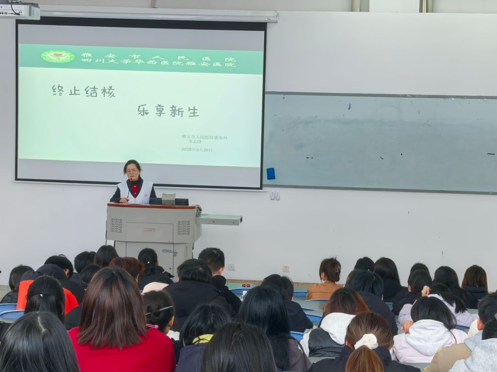 为进一步普及结核病防治知识,增强师生健康防护意识,倡导科学预防理念,在第30个世界防治结核病日来临之际,3月24日,学校特邀雅安市人民医院感染科主任龙志玲主任医师开展结核病防治专题讲座。学校250余名学生和老师参加活动。