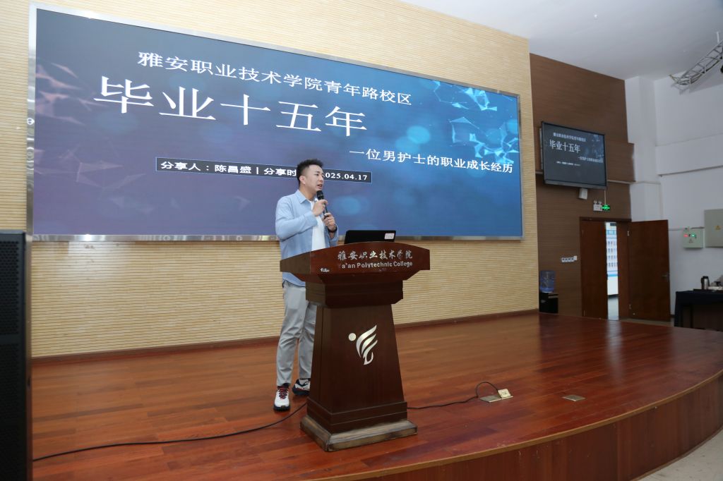 优秀校友陈昌盛以自身成长经历为主线,用质朴而真挚的语言,讲述了从初入职场的迷茫到成长为行业骨干的心路历程,让同学们深刻体会到护理不仅是谋生的职业,更是值得为之奋斗终身的事业,也帮助大家对自身价值有了更清晰的定位,其拼搏进取的护理事业历程成为同学们学习的榜样。