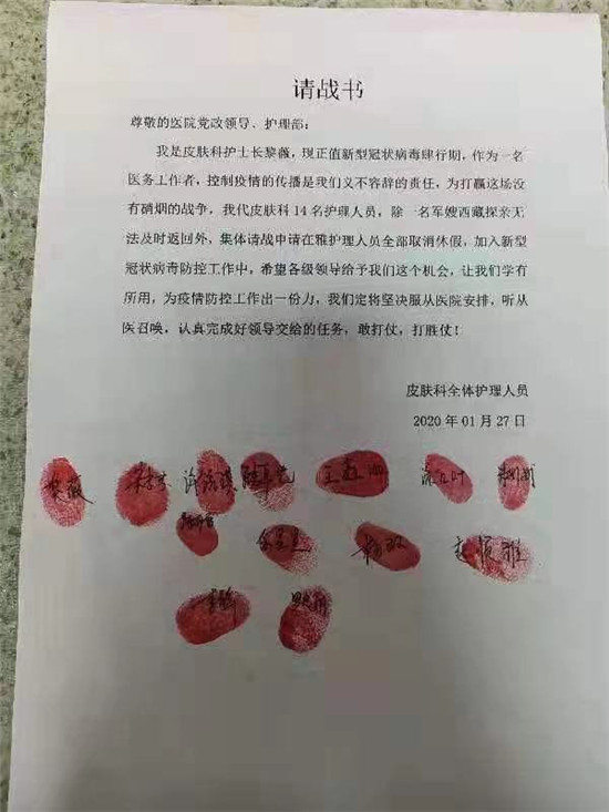 据统计,截止目前,雅职院已有160余名医护人员在请战书上签名,主动申请加入援鄂的志愿者也已达到122人次(包括附院医务人员及学院医卫类教师)。