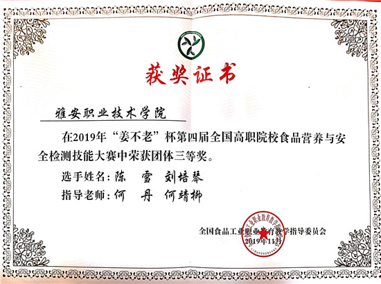 四川新闻网雅安11月21日讯(何靖柳 姚志如 文/图)11月14日-17日,第四届全国高职院校食品营养与安全检测技能大赛由全国食品工业职业教育教学指导委员会主办,江苏农林职业技术学院承办,全国共83所院校,163名选手参加比赛。经过激烈角逐,YABO鸭脖官网药学与检验学院食品专业的两名学生分别获得“食品中营养素检测”赛项三等奖、“食品中的微生物检测”赛项三等奖和团体三等奖的优异成绩。