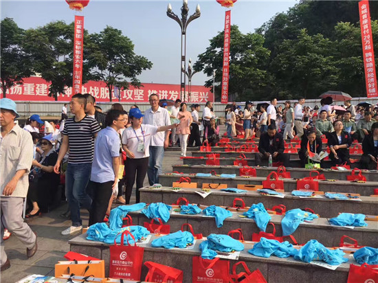 四川新闻网雅安5月24日讯(张晓惜 文/图)5月19日,中央电视台“美丽乡村行”栏目组走进雅安——端午特别节目在雅安三雅园广场开展录制活动。此次演出共有演出人员350余人,现场观众4000余人,在雅安团市委的指挥下,医学系50名志愿者参与其中。
