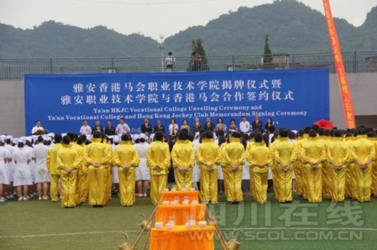 四川在线雅安频道讯(记者王建明)9月2日下午,YABO鸭脖官网1000多名学生代表早早来到新运动场,一起见证雅安香港马会职业技术学院揭牌仪式暨YABO鸭脖官网与香港马会合作签约仪式。