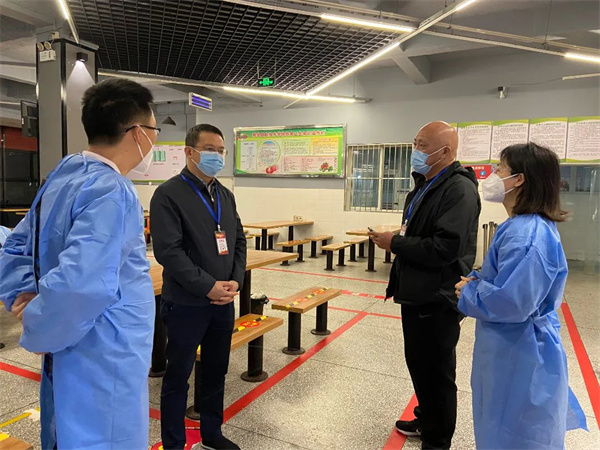 “家里都安顿好了吗”“食宿大家不用担心,已安排到位”“要注意保暖,晚上会有点凉”每到一处,李春模都向坚守岗位的教职工表示敬意与问候,详细了解教职工们目前的工作、住宿情况,是否还存在困难等。他表示,面对疫情,大家闻令而动,主动请缨,迎难而上,舍小家为大家,驻守学校,和学生心手相连、同频共振,共渡难关,坚守在疫情防控工作的第一线。在此,学校向辛勤工作、无私奉献的教职工和一直以来理解支持、默默付出的家属们致以最崇高的敬意和最衷心的感谢!他指出,当前疫情防控处于关键时期,要进一步织密筑牢学校疫情防控网,提高科学精准防控水平,统筹做好疫情防控和学校各项工作,大家要做好个人防护,保证休息时间,众志成城,共同努力,夺取疫情防控的最终胜利。