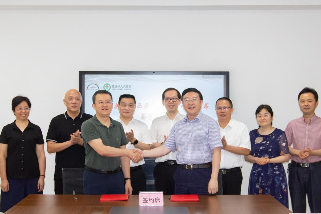 学院与雅安市人民医院持续深化校院合作,本着“校院共建、资源共享、优势互补”的原则,围绕川西医学教育中心建设,对接新型健康服务业“专业化、精品化、信息化”发展需求,创新新型健康服务“工学结合、联合培养”的人才培养模式。双方将在医药卫生类专业人才培养中深入推进医教协同,开展护理专业“1+2”联合培养的学历教育,在职后培训、继续教育方面共同开展专业及课程教学标准、教材开发、课程制作、人才培养模式创新等工作。同时,双方将共建科研平台,开展技术创新合作,共同推进“医学+制造”“医学+信息”的科技创新与积极推进成果转化,服务川西医养中心建设。
