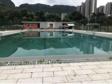 游泳实训场地建在青年路校区,共计一块。场地按照国际标准进行修建,长50米、宽21米,水深1.8米、共计8根跑道。出发台居中设在每泳道中心线上,台面50厘米×50厘米。台面临水面前缘应高出水面50至70厘米,台面倾向水面10度。游泳实训场地主要提供给休闲体育游泳专业课和对外创收项目使用。场地配备专业的救生员和指导教练,水定期进行消毒和更换,符合国家对于游泳池安全和卫生需要。