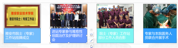 以“复杂难愈性创面治疗“工作为基础,2019创建“中以国际慢性创面治疗及培训”雅安市院士(专家)工作站。由临床经验丰富的内、外科专家及资深的伤口治疗师组成精英团队,以慢性创面诊治中心为平台,联合骨科、外科、皮肤科、烧伤科、内科等多个学科的专家,集中收治各种慢性复杂性创面,主要针对慢性创面开展综合治疗。一是促进智力引进,引入国际先进的治疗理念和管理模式以及相关产品。二是将国内各个创面中心的先进、成熟的医疗技术或与医学相关的特有技术相互交流、推广、应用和指导。三是通过科研协作,促进人才培养和科研水平提升。