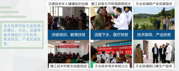 3. 研究平台建设辐射带动周边中高职院校发展作用突显。推进高等学校继续教育资源开放,实现雅安本地群众就近就地转产转岗就业的愿望及提高生活水平、提高科学文化素养的需求。